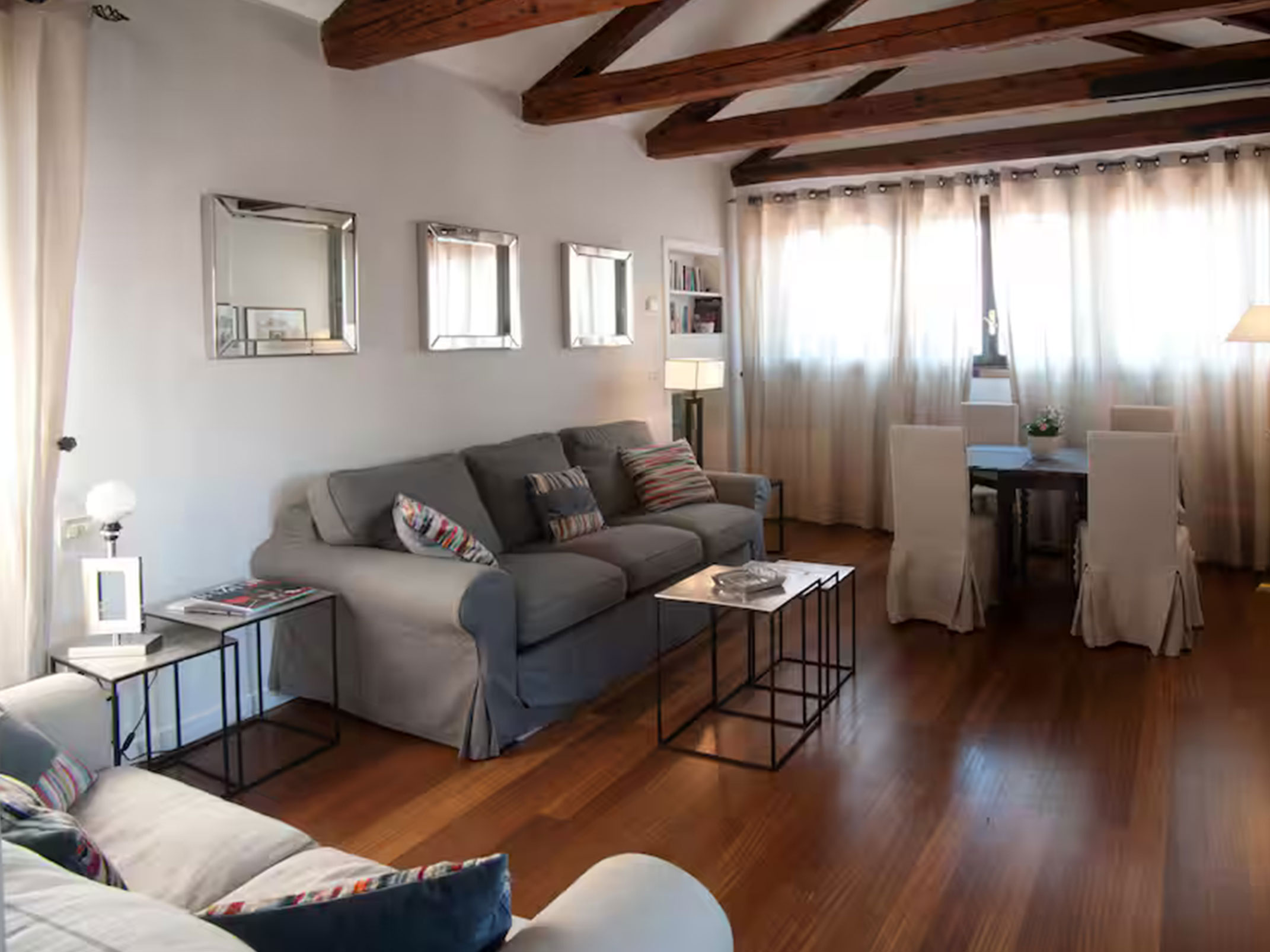 L’Appartamento Deluxe offre spazi generosi e versatilità, ideale per soggiorni più lunghi o per famiglie. È composto da due camere da letto confortevoli, due cucine completamente attrezzate, un luminoso soggiorno con vista sul canale e due bagni moderni con doccia e set di cortesia. La disposizione degli ambienti permette di dividere gli spazi, garantendo privacy e flessibilità per ogni tipo di ospite.