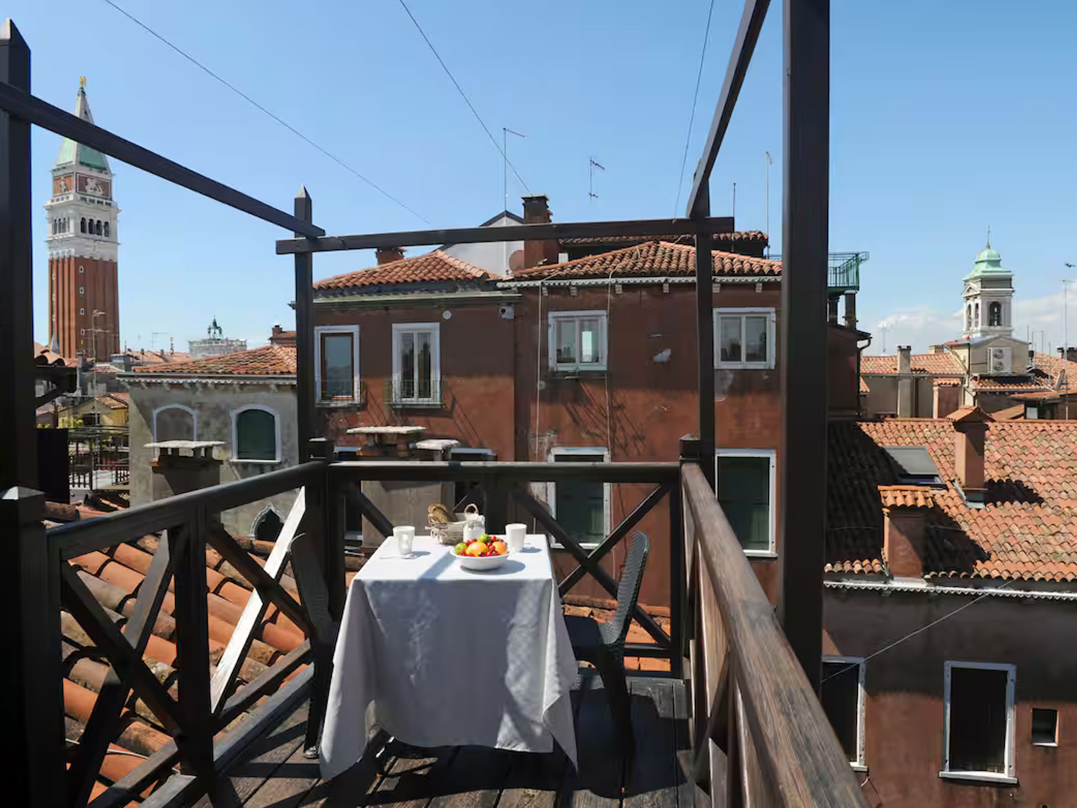 Ampio appartamento con due camere da letto e terrazza panoramica con vista su Venezia. Dispone di una zona soggiorno con tavolo da pranzo, cucina completamente attrezzata e bagno privato. Situato al quarto piano; l’ascensore arriva fino al terzo piano, con una rampa di scale si potrà accedere facilmente all'appartamento.