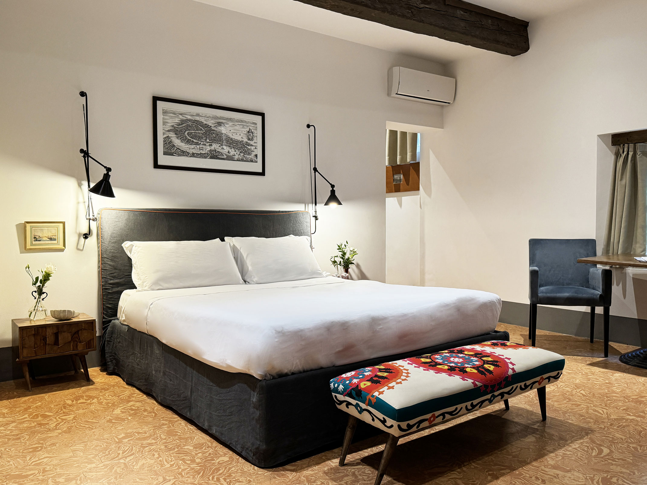 A Palazzetto San Marco, scegliete tra una selezione di camere raffinate, ognuna pensata per unire il fascino veneziano al comfort moderno. Che il vostro sia un soggiorno romantico o una breve pausa in città, ogni camera dispone di aria condizionata, bagno privato, WiFi gratuito e dettagli curati per garantirvi un soggiorno rilassante e confortevole, a pochi passi da Piazza San Marco e dal Ponte di Rialto.