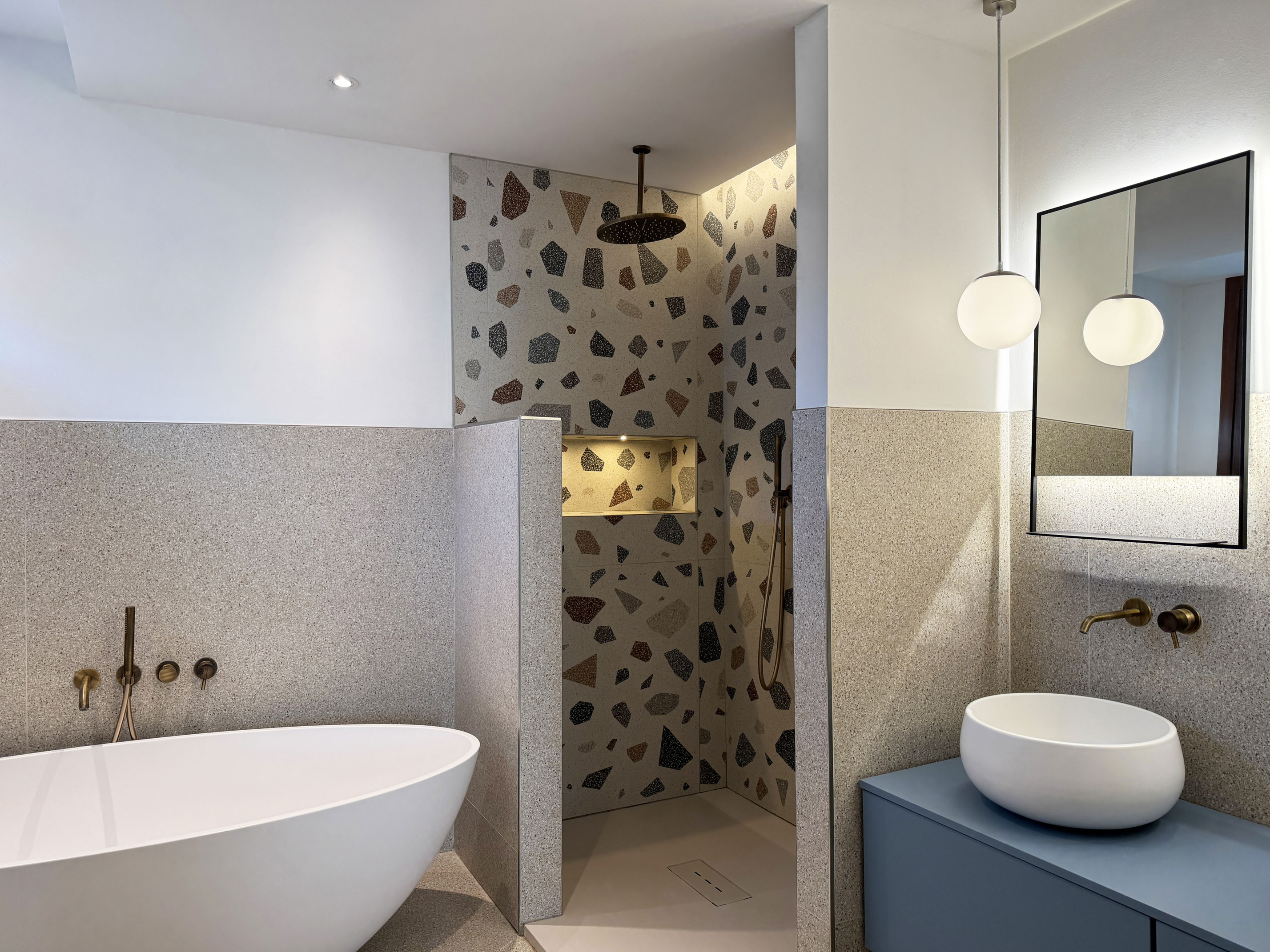 Questa elegante suite dispone di una spaziosa camera da letto e di un accogliente soggiorno, entrambi climatizzati e insonorizzati. Una terrazza privata regala incantevoli viste sulla città, mentre il bagno moderno è dotato di doccia a filo pavimento. Alcune suite offrono anche suggestive vedute sul canale.